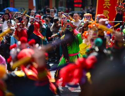 图2:2004年,泉州少林寺武僧释理亮表演一指禅绝技。来源:《东南早报》