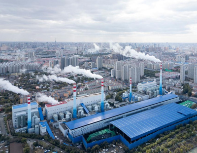 3月21日,在河北省石家庄市藁城区,志愿者徒步巡河,捡拾周围垃圾(无人机照片)。