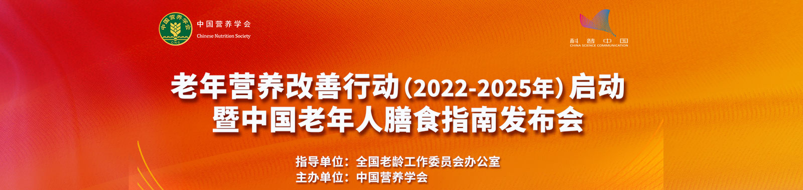 2022年11月21日下午14:00,在全国老龄工作委员会办公室领导下,中国营养学会将举办全国老年营养改善行动启动仪式,会上还将发布并解读《中国老年人膳食指南(2022)》,敬请关注!