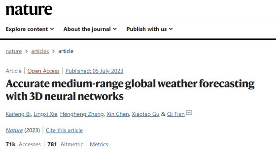 7月6日华为云盘古气象大模型登上《自然》杂志,图源:《自然》杂志官网