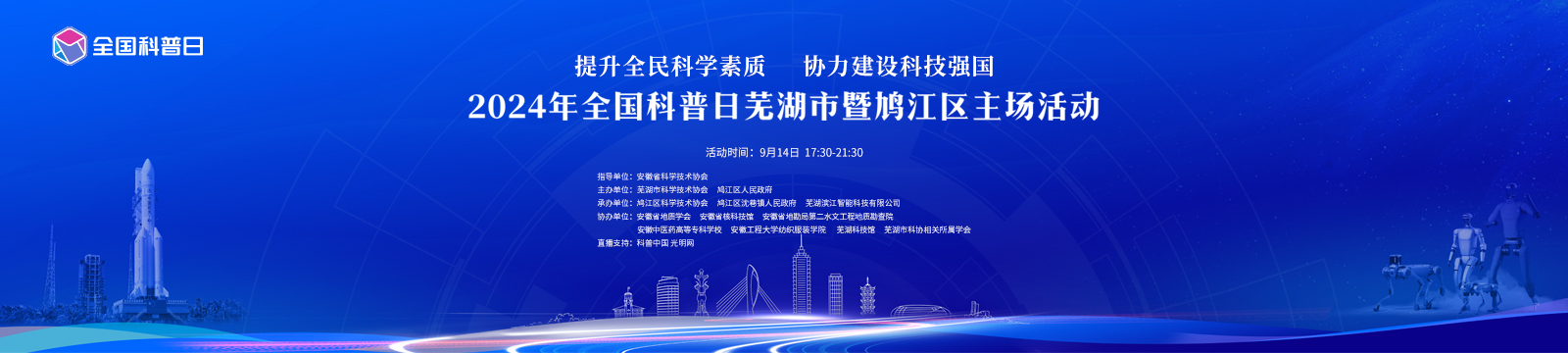 2024年9月14日,芜湖市全国科普日主场活动——2024年“芜湖科普之夜”将在芜湖跨江发展的重镇鸠江区沈巷镇中心广场举行。活动以线下参与、网络直播、电视录播3种方式,充分展示芜湖市科技创新、全域科普实践和弘扬科学家精神等方面的工作成效,为人民群众带来一场全新科普体验。“芜湖科普之夜”文艺演出强调价值引领,突出政治性、思想性、科学性、艺术性和群众性,综合运用多种艺术表现形式,以“设计感、娱乐感、意义感,故事力、交响力、共情力”的“三感三力”思维内涵,打造一场“科普+产业”、“科普+教育”、“科普+民生”、“科普+文体”,与新产品、新技术、新应用贴身互动,科普知识讲解、科学实验助力,文体表演助兴等,大力弘扬科学精神和科学家精神,广泛传播科学思想,展现科技魅力,培育创新文化,激发创新自信。