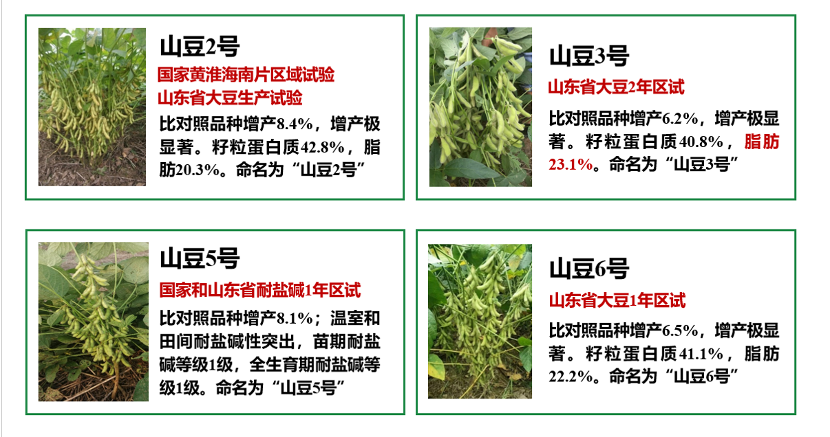 基于这些研究,团队选育出了多个适宜黄淮海地区种植的大豆新品系——其中“山豆2号”和“山豆3号”,集高产、高油、耐盐碱等优点于一身。目前,它们正在参加国家和山东省夏大豆区域试验。从田间种植的情况来看,豆子颗粒饱满,产量远超当前我国大豆的平均亩产。如果大面积推广,预计在正常种植条件下,产量能提高10%。这不仅能让农民收获更多的大豆,增加收入,还能让我国的大豆产业在自给自足的道路上迈出更坚实的一步。