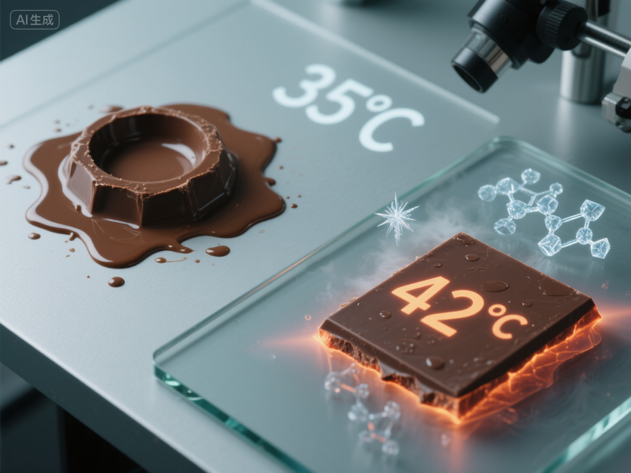 然而,传统巧克力有一个 “致命弱点”,那就是对温度极为敏感。其核心成分之一可可脂,在常温下赋予巧克力完美固态与口感,但它非常“娇气”。一旦环境温度接近或超过其熔点(通常在30℃-34℃之间),特别是在炎夏,可可脂便开始融化,导致巧克力变形、变软,食用体验一落千丈。这也使得巧克力在夏日的储存和运输面临巨大挑战,让许多爱好者只能望“巧”兴叹。