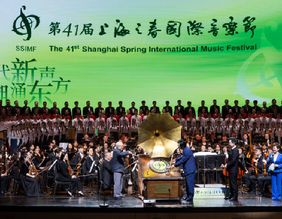 4月24日,动车组列车从广西柳州市柳江区进德镇白山村山中屯前经过(无人机照片)。