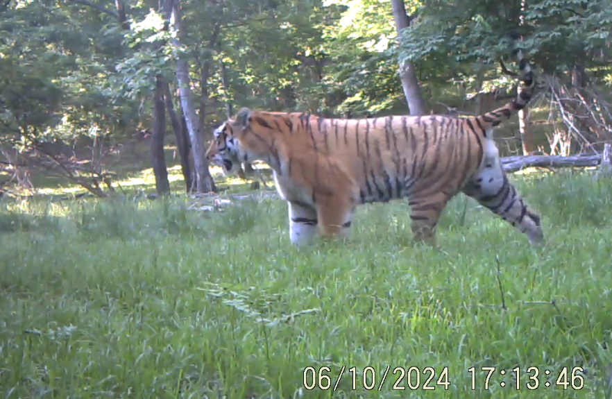 如今,在东北虎豹国家公园生,生态系统正在被整体保护、修复和治理,顶级捕食者的回归触发级联效应。野生东北虎、豹逐渐在沉寂中“苏醒”,数量分别由2017年建立国家公园体制试点之初的27只、42只增长至70只、80只左右,棕熊、紫貂、原麝、中华秋沙鸭、金雕等野生动物,以及人参、松茸、东北红豆杉等野生植物的种群也在不断恢复壮大。形成“动物调控-植物更新-土壤修复”的正向循环。