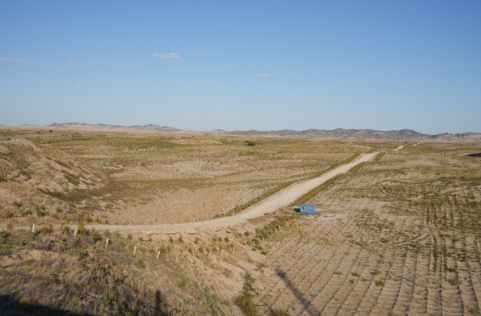 在翁牛特旗齐白公路沿线,治沙技术的创新更为多元。翁牛特旗林草局总工程师付广军介绍,项目区设置了生物沙障、可降解沙障等多种固沙设施,并划分出四大功能区:沙障建设区试验各种新型材料,人工造林区种植白柠条、樟子松等适生植物,封沙育林区通过补播草种促进植被自然恢复,防火瞭望区则通过远程监控守护这片来之不易的绿色。